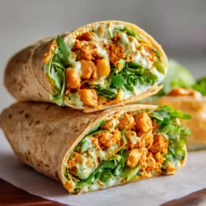 They’re moderately spicy; reduce buffalo sauce for milder wraps.