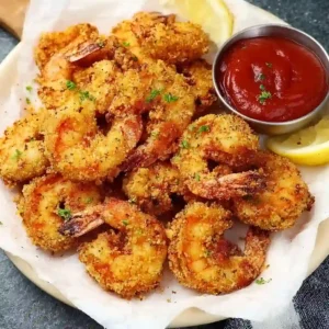 This recipe is perfectly crispy without deep frying, ready in under 15 minutes, family-friendly, and ideal for busy weeknights. It uses simple pantry spices and is lighter and healthier than traditional fried shrimp.