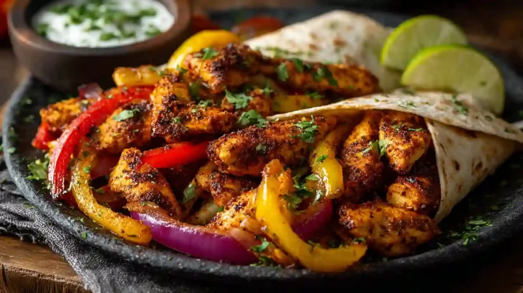 Serve chicken fajitas with flour or corn tortillas, rice, or in burrito bowls. Toppings like sour cream, shredded cheese, and fresh cilantro can add extra flavor and texture.