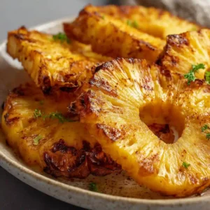 This Air Fryer Pineapple delivers bold caramelized flavor with minimal effort. Whether served as a healthy dessert or a sweet-savory side, it’s a quick recipe that tastes just like grilled pineapple — without the grill.