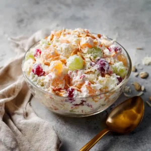 Ambrosia Salad is a nostalgic, creamy dessert that’s both easy and delicious. With its combination of sweet fruit, fluffy cream, and soft textures, it’s a guaranteed crowd-pleaser for any occasion.
