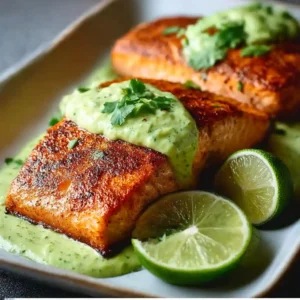 Baked Cajun Salmon with Creamy Avocado Lime Sauce