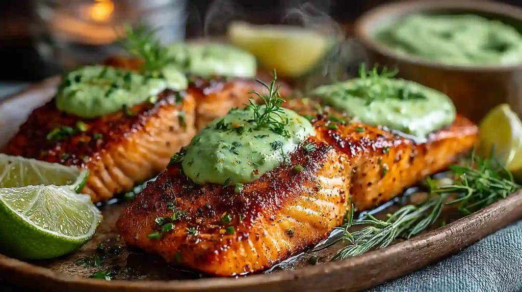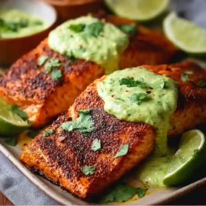 Baked Cajun Salmon – Creamy Avocado Lime Sauce