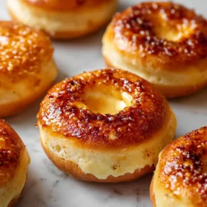 Baked Crème Brûlée Donuts are a luxurious twist on classic donuts, filled with silky vanilla pastry cream and topped with a crisp caramelized sugar layer. This elegant dessert combines the richness of crème brûlée with the softness of baked donuts for a bakery-style treat at home.