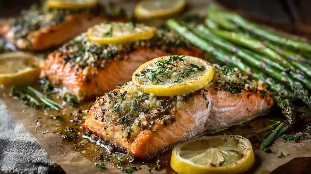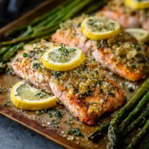 This Baked Lemon Garlic Salmon recipe is loved for its simplicity, fresh flavor, and foolproof cooking method. The lemon and garlic create a light yet rich sauce that keeps the salmon moist and flaky. It’s a one-pan meal that pairs beautifully with roasted vegetables, rice, or salad, making it perfect for both quick weeknight dinners and special occasions.