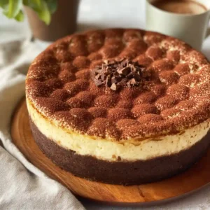 This dessert delivers the best of both worlds: deep chocolate flavor, smooth mascarpone cheesecake, and a light coffee cream topping. The baked tiramisu cheesecake is family-friendly, crowd-pleasing, and perfect for make-ahead entertaining.