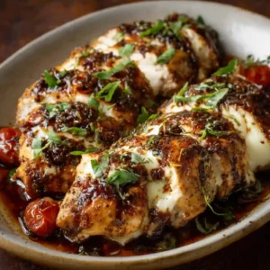 Balsamic Chicken with Mozzarella Cheese is an easy, flavorful dish that delivers tender chicken, sweet tomatoes, and cheesy goodness in every bite. Whether for a weeknight dinner or casual entertaining, this recipe is a reliable crowd-pleaser.