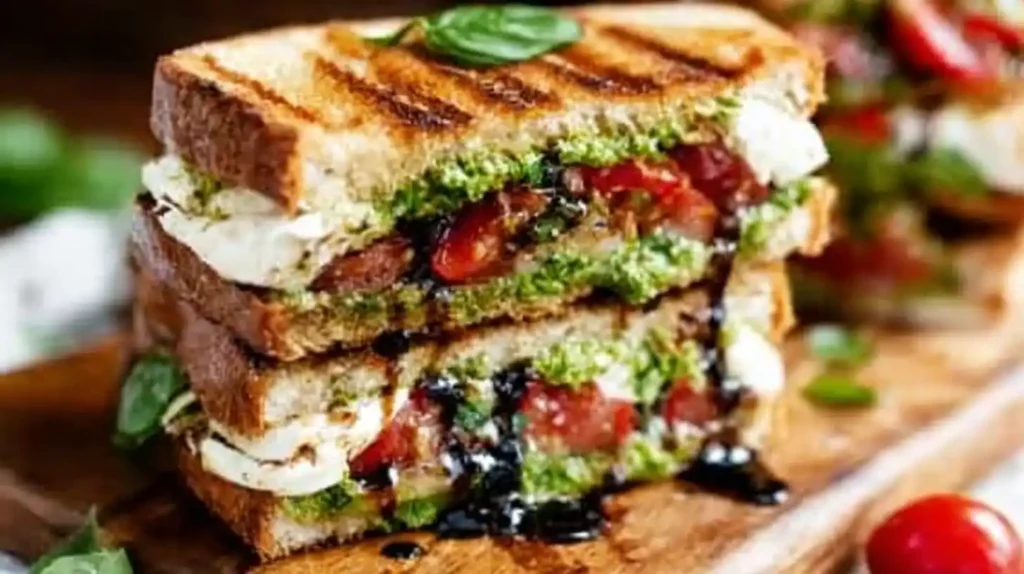- Grill on a panini press or grill pan until golden and crisp, and the cheese is melted. Serve the Balsamic Glazed Caprese Panini immediately.