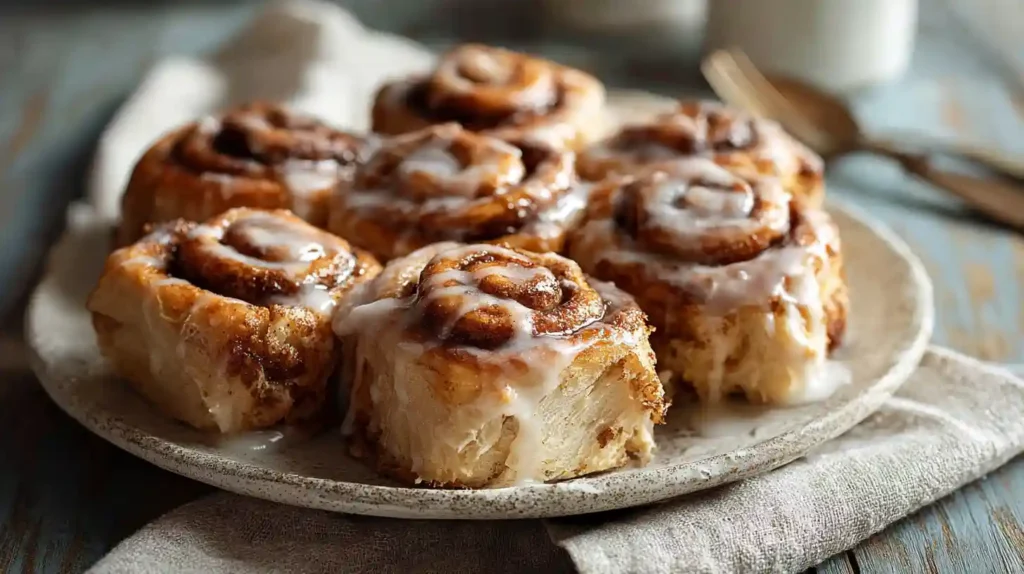 - Spread frosting over warm banana bread cinnamon rolls and serve.