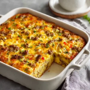 This comforting Breakfast Casserole is a classic oven-baked egg dish loaded with beef sausage, cheese, and vegetables. It’s easy to prepare, perfect for feeding a crowd, and ideal for make-ahead breakfasts or brunch gatherings. Simple ingredients come together to create a hearty, satisfying start to the day.