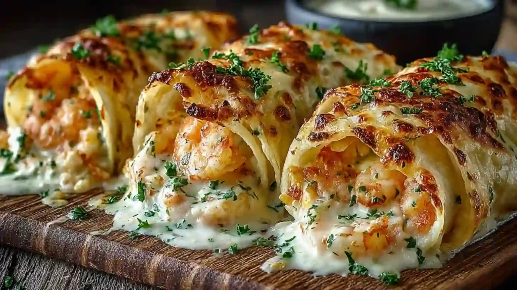 Cheesy Seafood Tortilla Bombs are rich, creamy, and packed with flavorful shrimp and crab in every bite. These baked tortilla rolls are stuffed with a cheesy seafood filling, topped with a luscious garlic cream sauce, and baked until golden and bubbly. If you love indulgent comfort food with a seafood twist, Cheesy Seafood Tortilla Bombs are about to become your new favorite dinner idea.