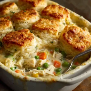 This Chicken Pot Pie Casserole is a comforting, family-friendly dinner that delivers all the cozy flavors of classic chicken pot pie in an easy baked casserole form. With tender chicken, creamy sauce, vegetables, and golden biscuits on top, it’s the perfect weeknight comfort meal.