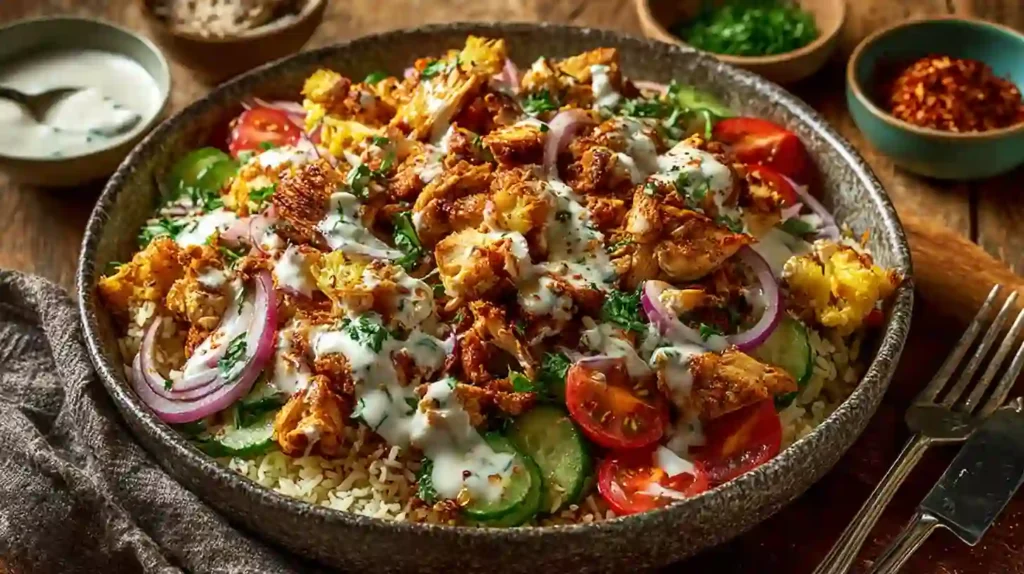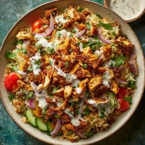 Chicken Shawarma Crispy Rice Salad is a vibrant, flavor-packed meal inspired by Middle Eastern shawarma spices. Tender spiced chicken, crunchy oven-baked rice, fresh herbs, and crisp vegetables are tossed together with a creamy lemon-tahini dressing for a refreshing yet satisfying salad.