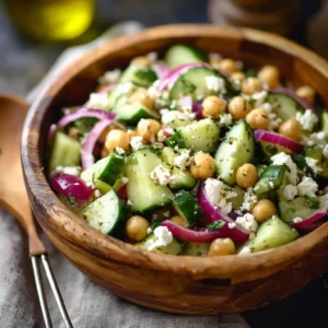 Chickpea Cucumber Feta Salad is a fresh, vibrant, and satisfying dish that comes together in minutes. Packed with crisp vegetables, creamy feta, and protein-rich chickpeas, this salad is perfect for light lunches, picnics, or as a refreshing side.
