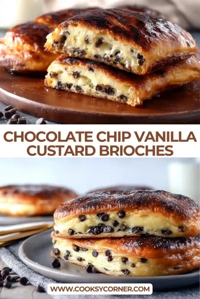 These chocolate chip vanilla custard brioches are soft, rich, and bakery-perfect. With fluffy brioche, creamy custard, and chocolate in every bite, they’re a show-stopping pastry worth every step.