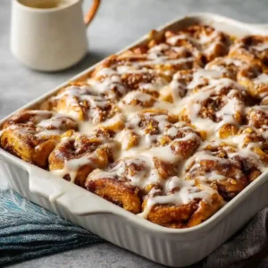 This Cinnamon Roll Casserole is rich, comforting, and incredibly simple to prepare. It combines the soft texture of baked bread with a creamy custard and sweet cinnamon topping. It’s family-friendly, great for gatherings, and can be prepped ahead for stress-free mornings.