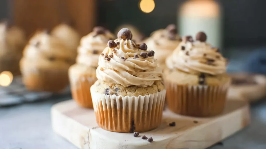 Beat butter and brown sugar until fluffy. Gradually add powdered sugar. Add cream, vanilla, and salt, then whip until light and creamy. - 5. Assemble the Cookie Dough Cupcakes