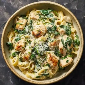 This Creamy Chicken Spinach Pasta is a simple yet elegant meal that delivers big flavor with minimal effort. Perfect for weeknight dinners or special occasions, it’s a recipe you’ll come back to again and again.