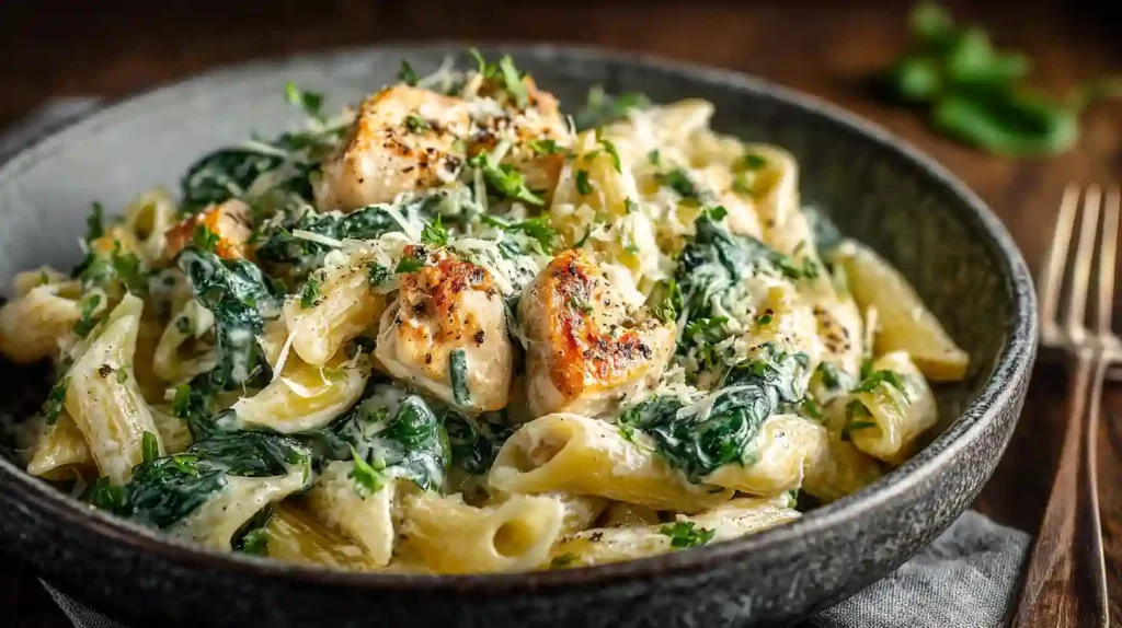 This Creamy Chicken Spinach Pasta is the ultimate comfort meal—rich, flavorful, and incredibly satisfying. With tender chicken, fresh spinach, and a silky cream sauce, it’s a quick dinner that feels restaurant-quality but is easy enough for any home cook.