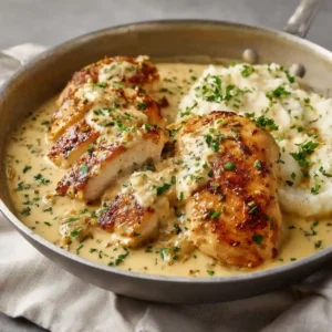 This recipe combines juicy chicken with a silky garlic cream sauce that’s full of flavor yet easy to prepare. It’s a one-pan dish that’s family-friendly, quick enough for weeknights, and impressive enough for guests.
