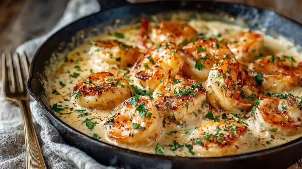 Creamy Garlic Shrimp with rich garlic cream sauce.