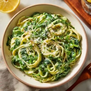 This Creamy Lemon Spinach Pasta is a fresh, vibrant, and comforting dish that brings together zesty citrus, leafy greens, and silky texture in every bite. It’s a perfect quick dinner that feels both light and satisfying.