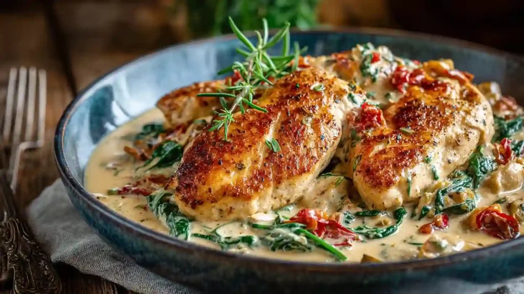 The chicken stays juicy, the sauce becomes silky and rich, and the spinach adds freshness and color. Everything cooks in one skillet, making cleanup easy and dinner stress-free.