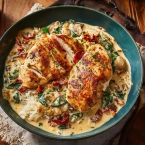 This Creamy Mediterranean Chicken Dinner brings together rich flavors, fresh vegetables, and tender chicken in one comforting skillet meal. It’s quick enough for busy evenings yet flavorful enough to feel special. Once you try it, it’s likely to become a regular favorite in your dinner rotation.
