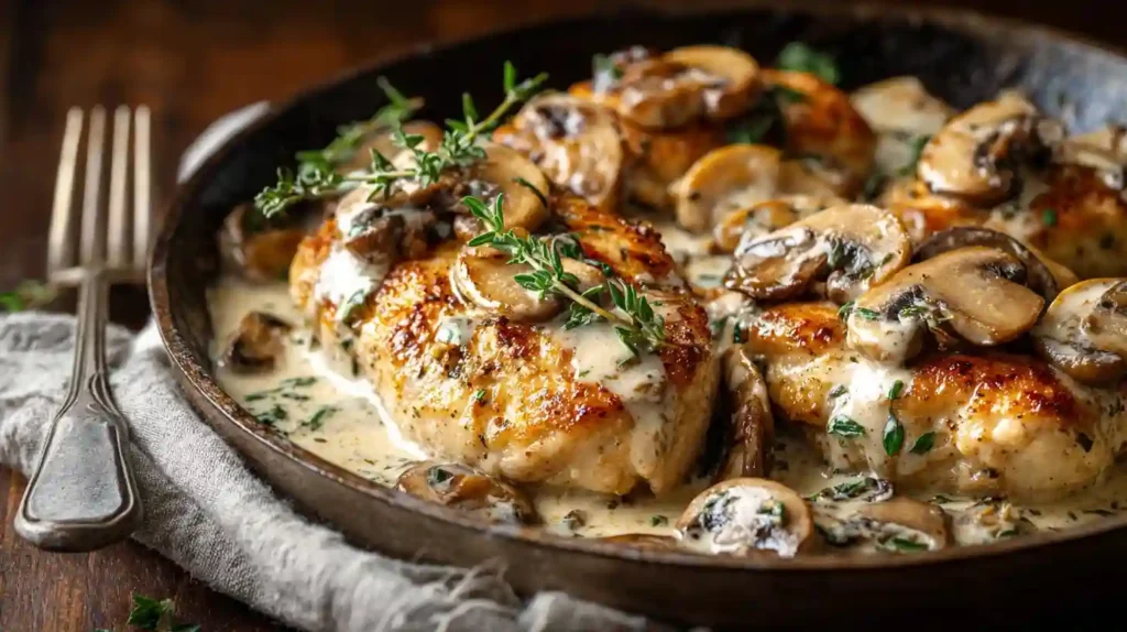 Creamy Mushroom Chicken is a comforting skillet dinner made with tender chicken cutlets and a rich garlic mushroom cream sauce. This classic dish is perfect for busy weeknights yet elegant enough for a special dinner. With simple ingredients and one-pan cooking, creamy mushroom chicken delivers deep flavor with minimal effort.