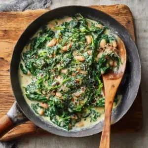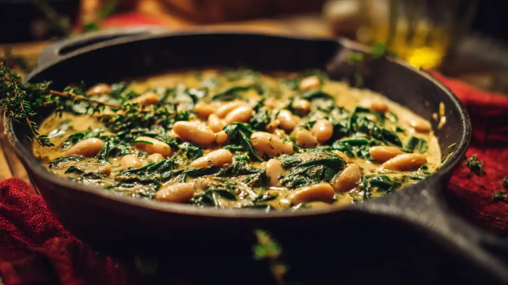 If you’re looking for a rich, comforting, and quick meal, this creamy spinach and beans skillet is exactly what you need. It combines tender navy beans with fresh spinach in a velvety, cheesy sauce that’s both satisfying and easy to prepare.