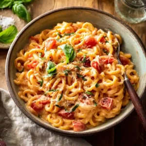 This Creamy Tomato Basil Pasta is a comforting and flavorful dish that combines a rich tomato cream sauce with tender pasta and fresh basil. The sauce is silky, slightly tangy, and perfectly balanced with garlic, Parmesan cheese, and aromatic herbs. It’s a quick and satisfying meal that’s perfect for weeknight dinners or cozy family meals.