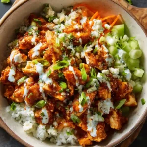 These Crispy Buffalo Chicken Bowls are the ultimate combination of crispy texture and saucy flavor. They’re easy to prepare, customizable, and perfect for meal prep. The mix of spicy buffalo sauce, crunchy vegetables, and fluffy rice makes every bite satisfying and delicious.