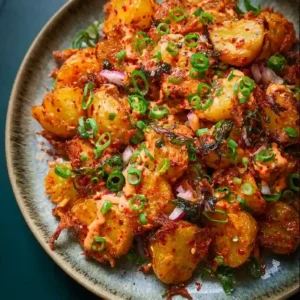 Crispy Gochujang Potato Salad is a bold, modern twist on classic potato salad, combining golden smashed potatoes with a creamy, spicy Korean-inspired dressing. This Crispy Gochujang Potato Salad delivers the perfect balance of crunch, creaminess, and umami in every bite.