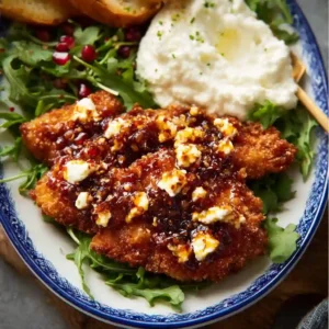 This Crispy Hot Honey Feta Chicken is the ultimate sweet-and-spicy comfort meal. Juicy chicken breasts are coated in seasoned panko, pan-fried until golden, topped with buttery feta, and finished with a drizzle of sticky hot honey. It’s bold, indulgent, and incredibly satisfying.