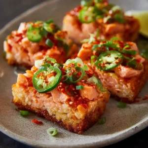 This recipe delivers an irresistible contrast of crispy and creamy textures. The rice is golden and crunchy on the outside while soft inside, and the spicy salmon topping is rich and flavorful. It’s perfect for entertaining, special occasions, or when you want something impressive yet simple.