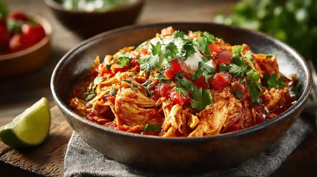 This Crockpot Salsa Chicken is incredibly simple and family-friendly. It uses pantry staples, requires almost no effort, and results in tender, juicy chicken every time. The slow cooking process infuses the chicken with rich salsa flavor, making it perfect for tacos, bowls, wraps, or salads.