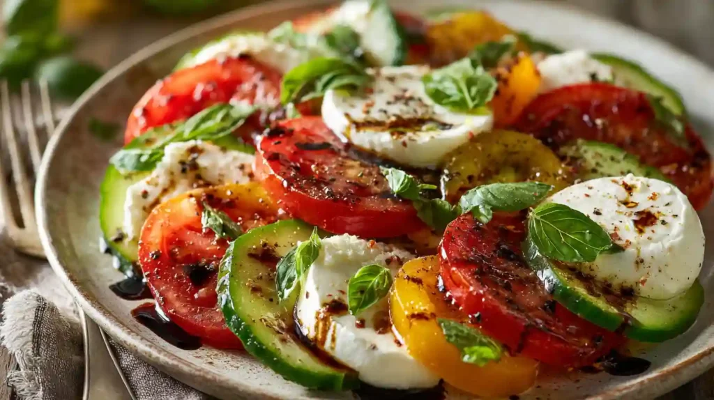 Cucumber Caprese Salad is a simple, elegant dish that highlights fresh ingredients and classic Mediterranean flavors. With juicy tomatoes, crisp cucumbers, creamy mozzarella, and aromatic basil, it’s a quick recipe that brings brightness to any table. Whether served as a side or a light meal, this salad is guaranteed to impress with minimal effort.