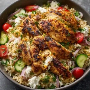 This Easy Greek Chicken Rice Bowl is hearty, healthy, and incredibly satisfying. The chicken is perfectly spiced, the rice is infused with lemon and herbs, and the fresh Greek salad adds crunch and brightness. It’s ideal for meal prep, family dinners, or a quick weeknight meal.