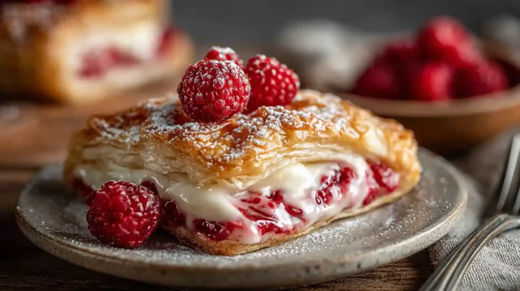 Easy Raspberry Cream Cheese Danish is a flaky, buttery pastry filled with sweet cream cheese and fresh raspberries. This simple bakery-style treat comes together quickly using puff pastry, making it perfect for breakfast, brunch, or dessert.