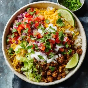 This easy taco bowl is everything you want in a meal—flavorful, customizable, and incredibly easy to prepare. The seasoned ground beef pairs perfectly with rice, beans, and fresh toppings, creating a balanced and hearty dish. It’s also great for families since everyone can build their own bowl just the way they like it.