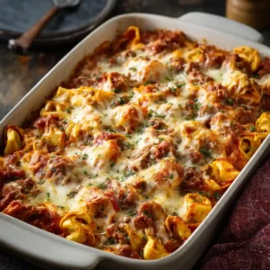 This Easy Tortellini Bake is a cozy, crowd-pleasing dinner made with cheese-filled tortellini, savory ground beef, marinara sauce, and melted cheese. It’s a simple oven-baked recipe that delivers big comfort with minimal prep—perfect for busy weeknights.