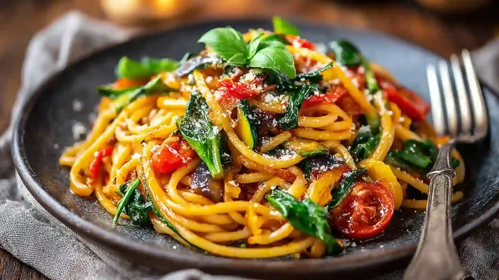 Easy Veggie Spaghetti is a comforting, colorful pasta dish that proves simple ingredients can create incredible flavor. With a rich tomato vegetable sauce and fresh herbs, this recipe is perfect for quick dinners, meal prep, or feeding the whole family. Once you try it, it may become a regular in your weekly meal rotation.