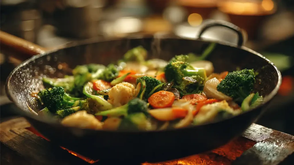 - Stir continuously for 1–2 minutes until the sauce thickens and coats the vegetables.