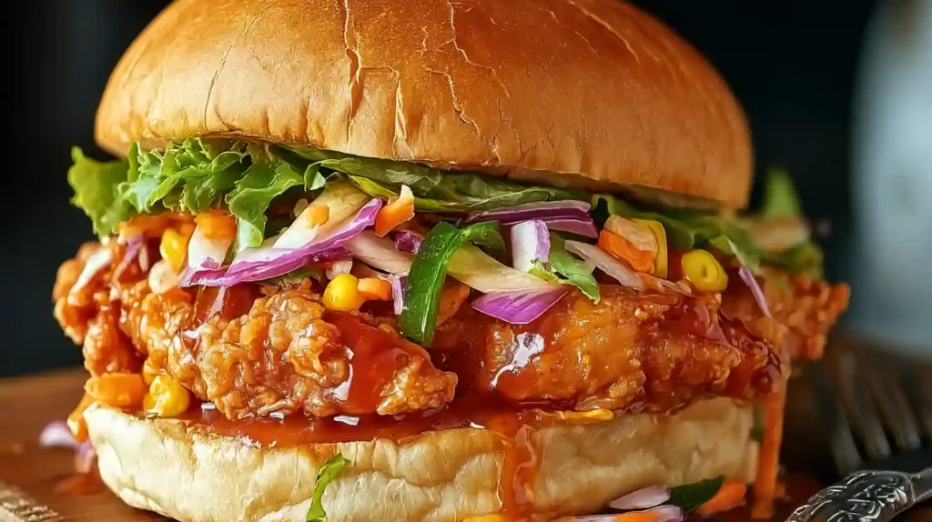 This Flavor-Packed Thai Fried Chicken Sandwich delivers bold Thai-inspired flavors with irresistibly crispy chicken, creamy sauce, and fresh herbs. Marinated in coconut milk and aromatic spices, then fried to golden perfection, this sandwich strikes the perfect balance between crunchy, juicy, spicy, and refreshing.