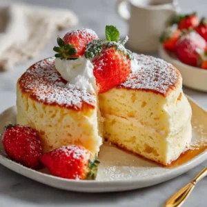 These fluffy Japanese soufflé pancakes are a dreamy combination of elegance and comfort. With their airy texture and gentle sweetness, they transform simple ingredients into a show-stopping dish that’s guaranteed to impress every time.