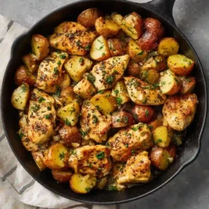 This garlic butter chicken and potato skillet is a simple yet flavorful meal that’s perfect for any night of the week. With its rich garlic butter sauce and hearty ingredients, it’s guaranteed to become a regular favorite in your kitchen.