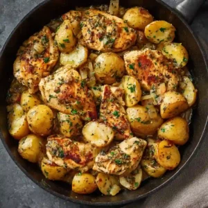 Garlic Butter Chicken and Potato Skillet is a flavorful one-pan dinner that combines tender chicken, golden potatoes, and rich garlic butter in a simple yet satisfying meal. With minimal prep and easy cleanup, this dish is perfect for busy evenings while still delivering comforting, homemade flavor. Once you try it, it’s sure to become a regular favorite in your weeknight dinner rotation.