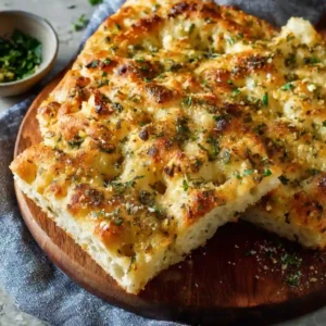 This Garlic Parmesan Focaccia Bread delivers bakery-quality results with minimal effort. Its crispy edges, soft interior, and savory topping make it a go-to recipe for any occasion.