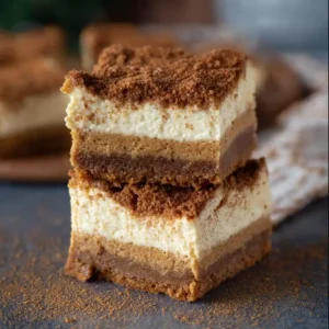 Gingerbread cheesecake bars with gingersnap crust are the perfect holiday-inspired dessert, combining warm gingerbread spices with a creamy cheesecake filling and a crisp cookie base. These festive bars are rich, cozy, and ideal for winter gatherings or make-ahead treats.