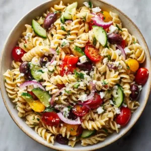 This Greek Pasta Salad is bright, satisfying, and incredibly easy to prepare. With crisp vegetables, creamy feta, and a zesty homemade dressing, it’s the ultimate summer pasta salad you’ll make again and again. Simple ingredients, bold Mediterranean flavor, and effortless preparation make it a must-have recipe for any occasion.